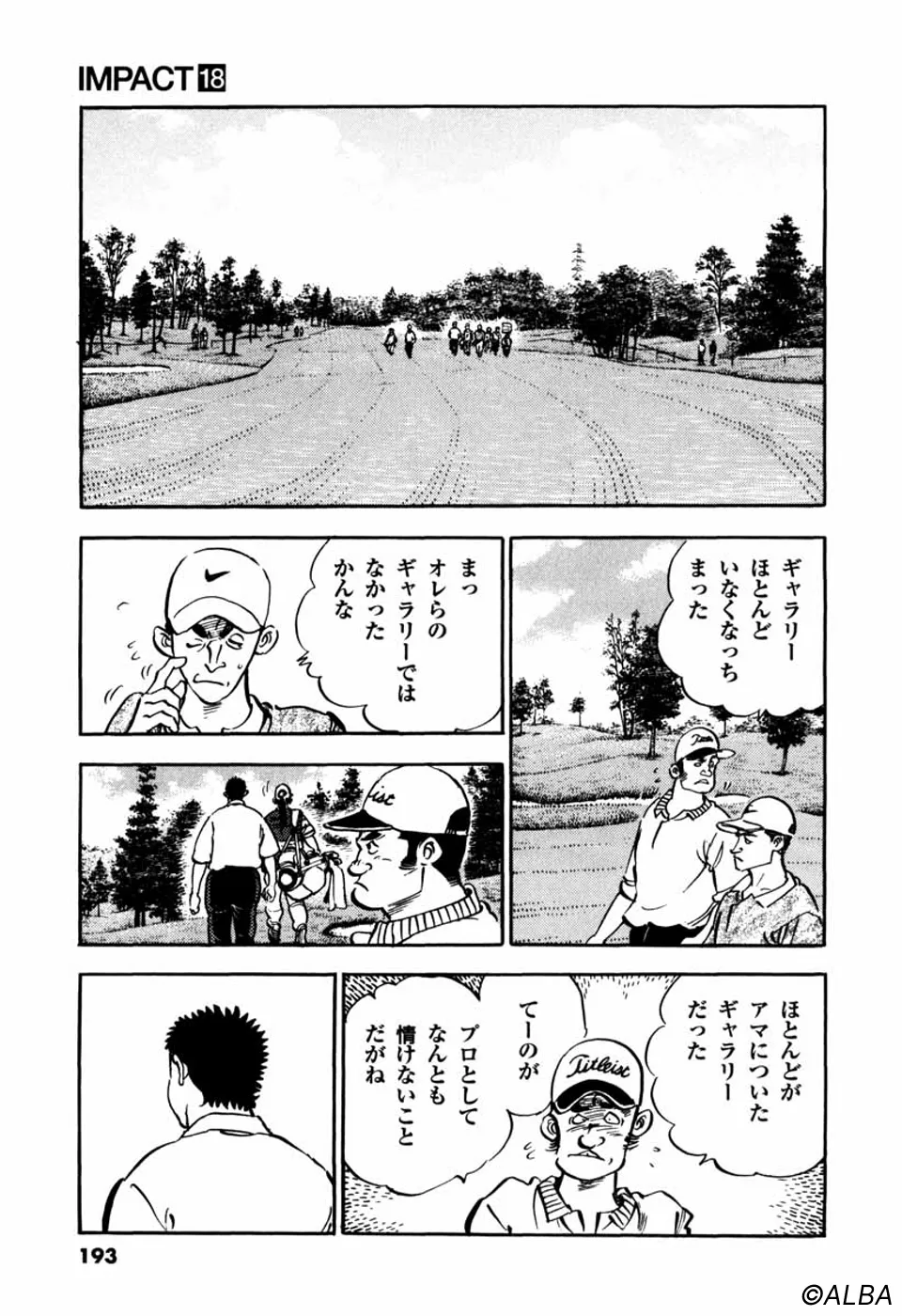 【第18巻あらすじ】ジャンボ尾関VS.鳴海一丸のゴルフ真剣勝負がついに決着。ストロークプレーのプロトーナメントであるにもかかわらず、二人の対決にギャラリーも大興奮。最終18番ホールにジャンボの、一丸の、男の意地が激突。ゴルフの醍醐味が満載の刊。