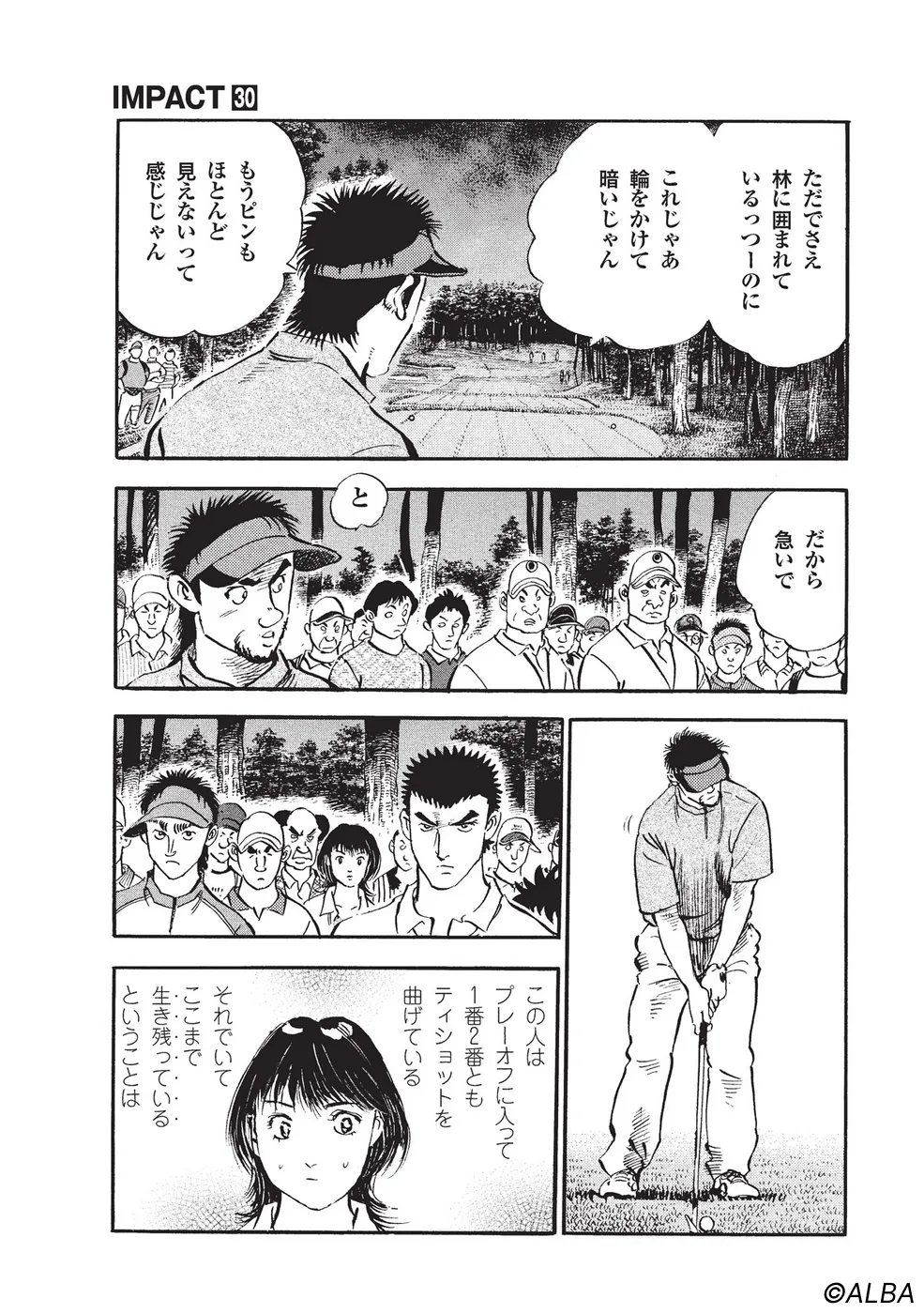 【第30巻あらすじ】日本アマチュア選手権予選。キャディを務めた一平の「クラブ超過」というミスにより、4罰打という重いハンディを背負うことになる。思わぬ苦戦を強いられることとなった一丸だったが、その後スコアを縮めていき決勝を賭けたプレーオフへと進出する。