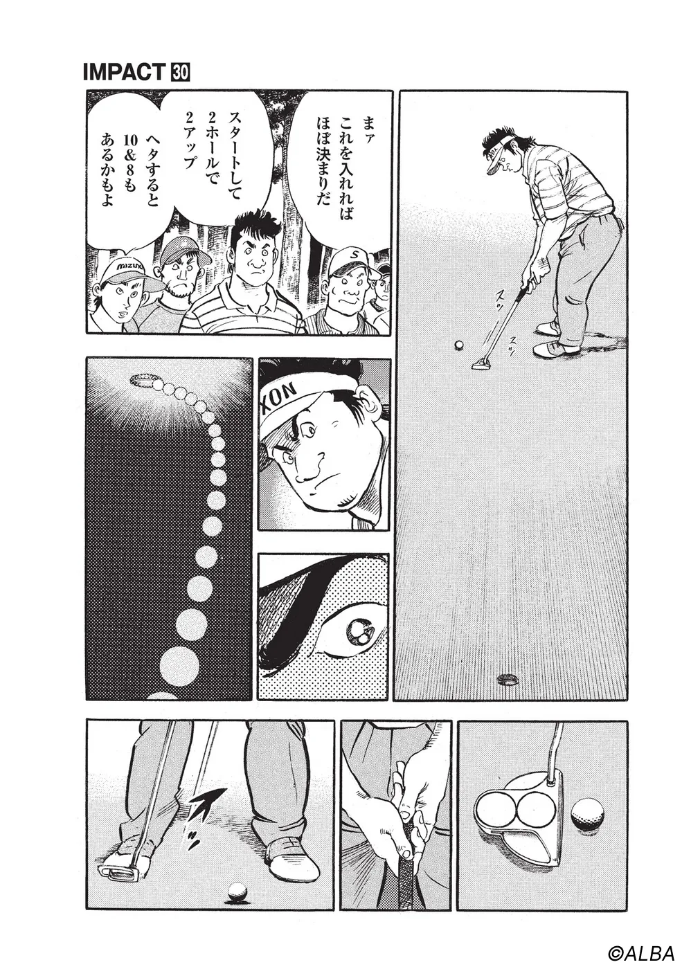 【第30巻あらすじ】日本アマチュア選手権予選。キャディを務めた一平の「クラブ超過」というミスにより、4罰打という重いハンディを背負うことになる。思わぬ苦戦を強いられることとなった一丸だったが、その後スコアを縮めていき決勝を賭けたプレーオフへと進出する。