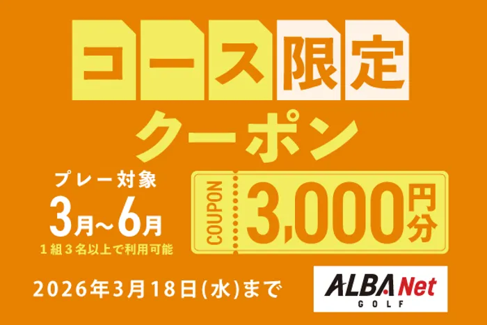 2026年3月9日 (月) 06時00分16月までのプレーに使える!対象コース限定3,500円分クーポン配布中!