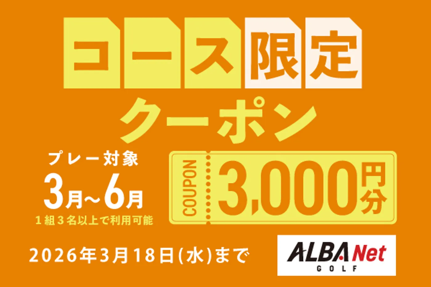 6月までのプレーに使える!対象コース限定3,000円分クーポン配布中!