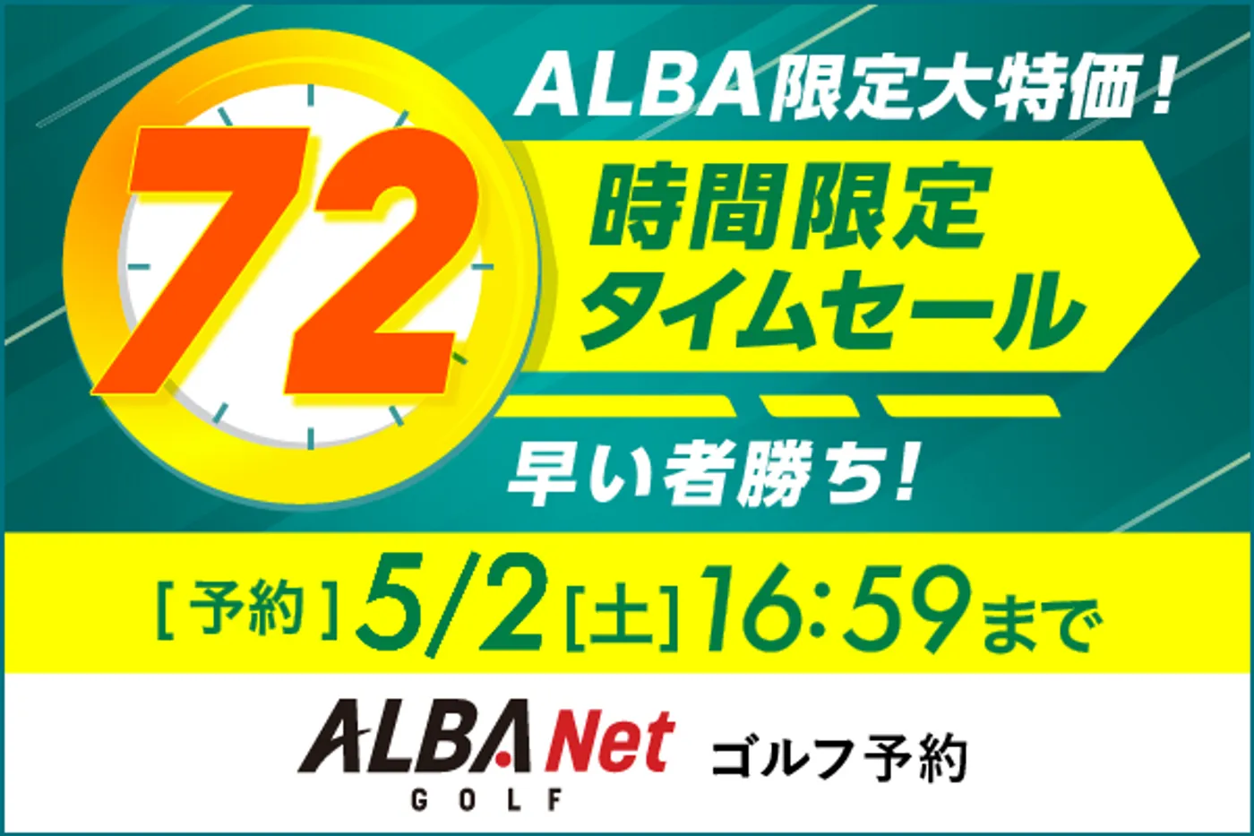 [写真] ALBA限定大特価!早い者勝ちの 72時間限定タイムセールを見逃すな!5/2(土)16:59まで!