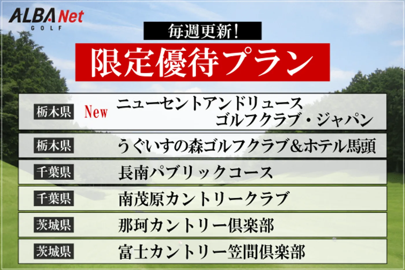 【毎週更新】関東エリアの人気コースを特別優待料金で予約ができる!