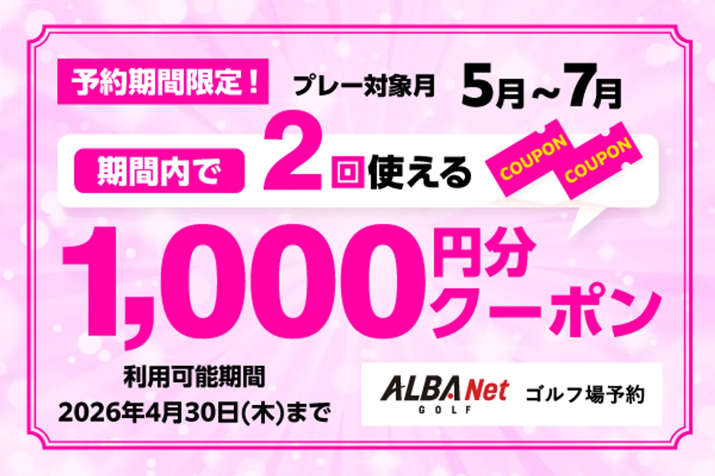 7月までのプレーに使える!対象コース限定2,000円分クーポン配布中!
