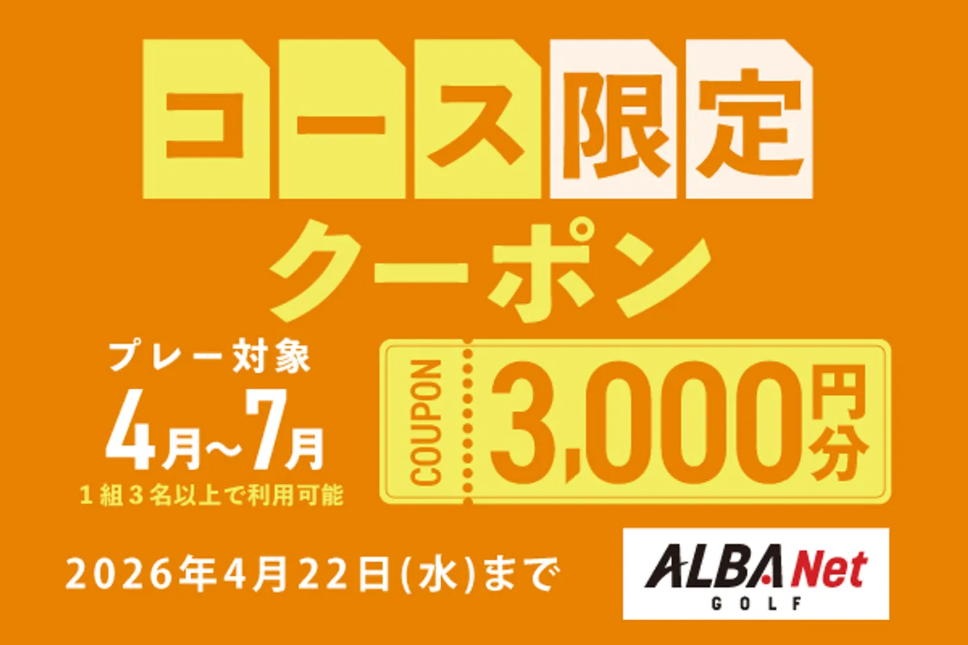 7月までのプレーに使える!対象コース限定3,500円分クーポン配布中!