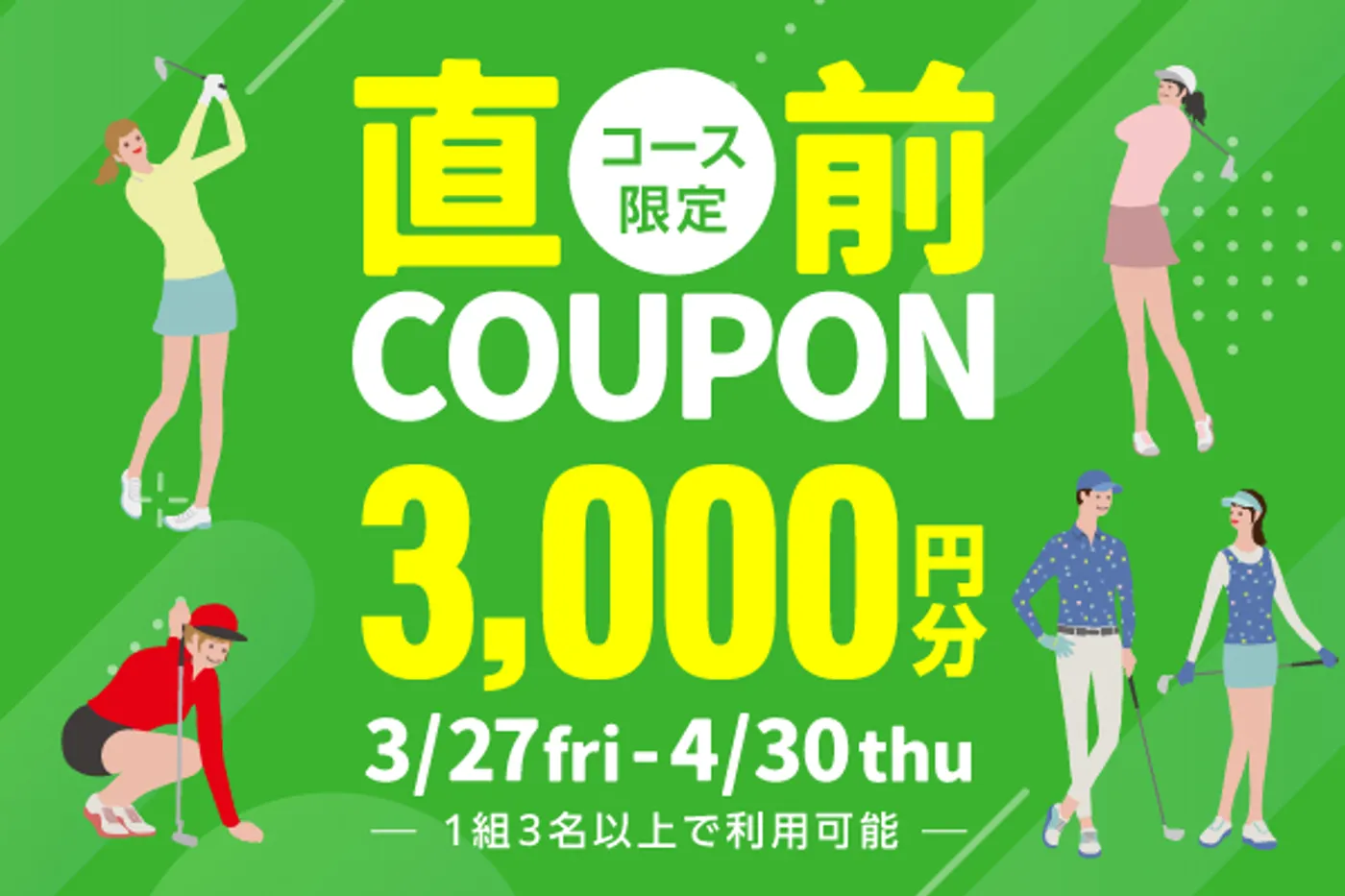 [写真] 4月までのプレーに使える!対象コース限定3,000円分クーポン配布中!