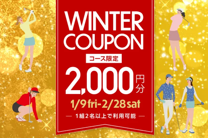 2月までのプレーに2回使える!対象コース限定2,000円分クーポン配布中!