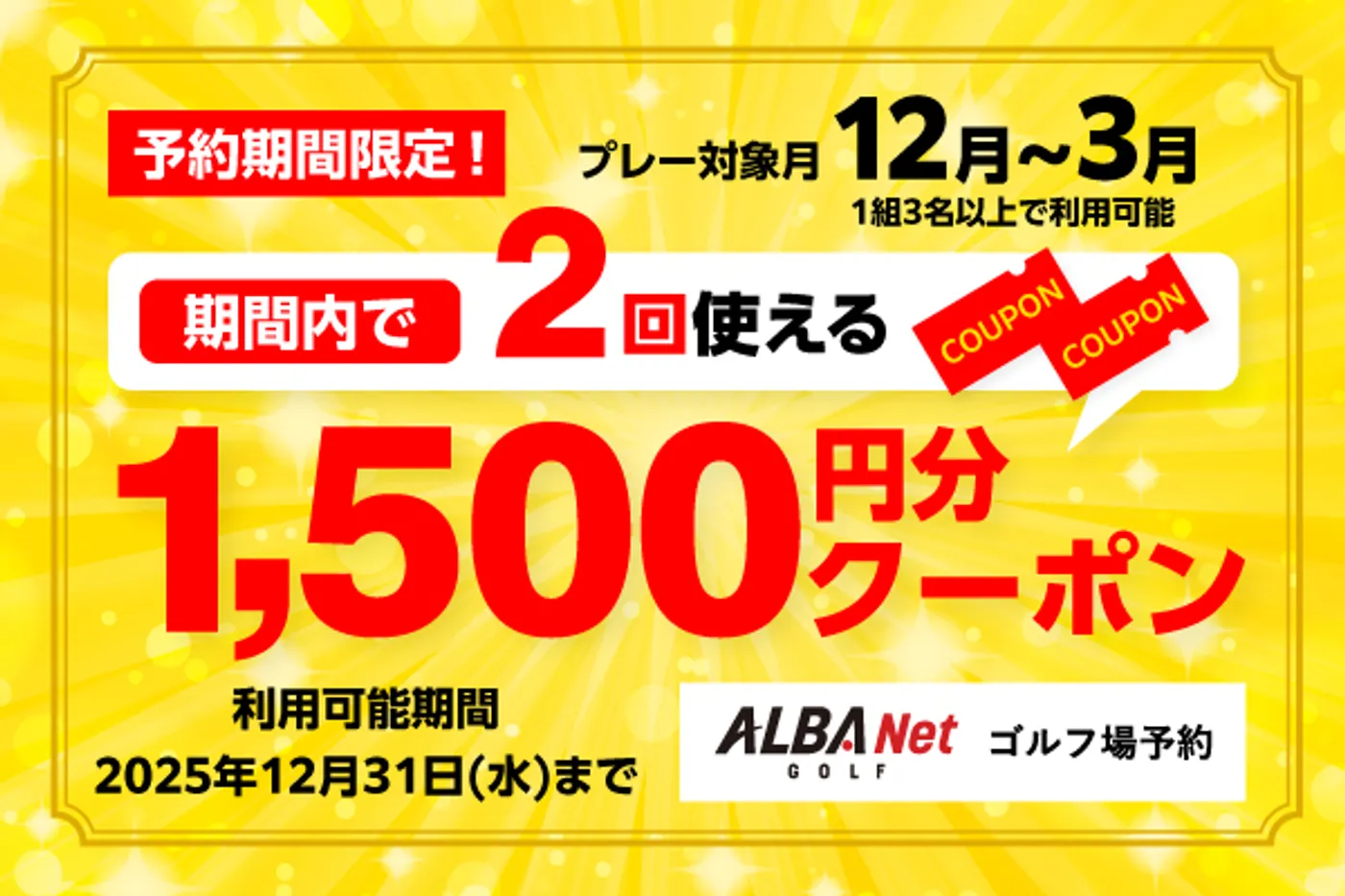 2025年12月26日 (金) 06時00分11月までのプレーに使える!対象コース限定3,000円&2,000円分クーポン配布中!