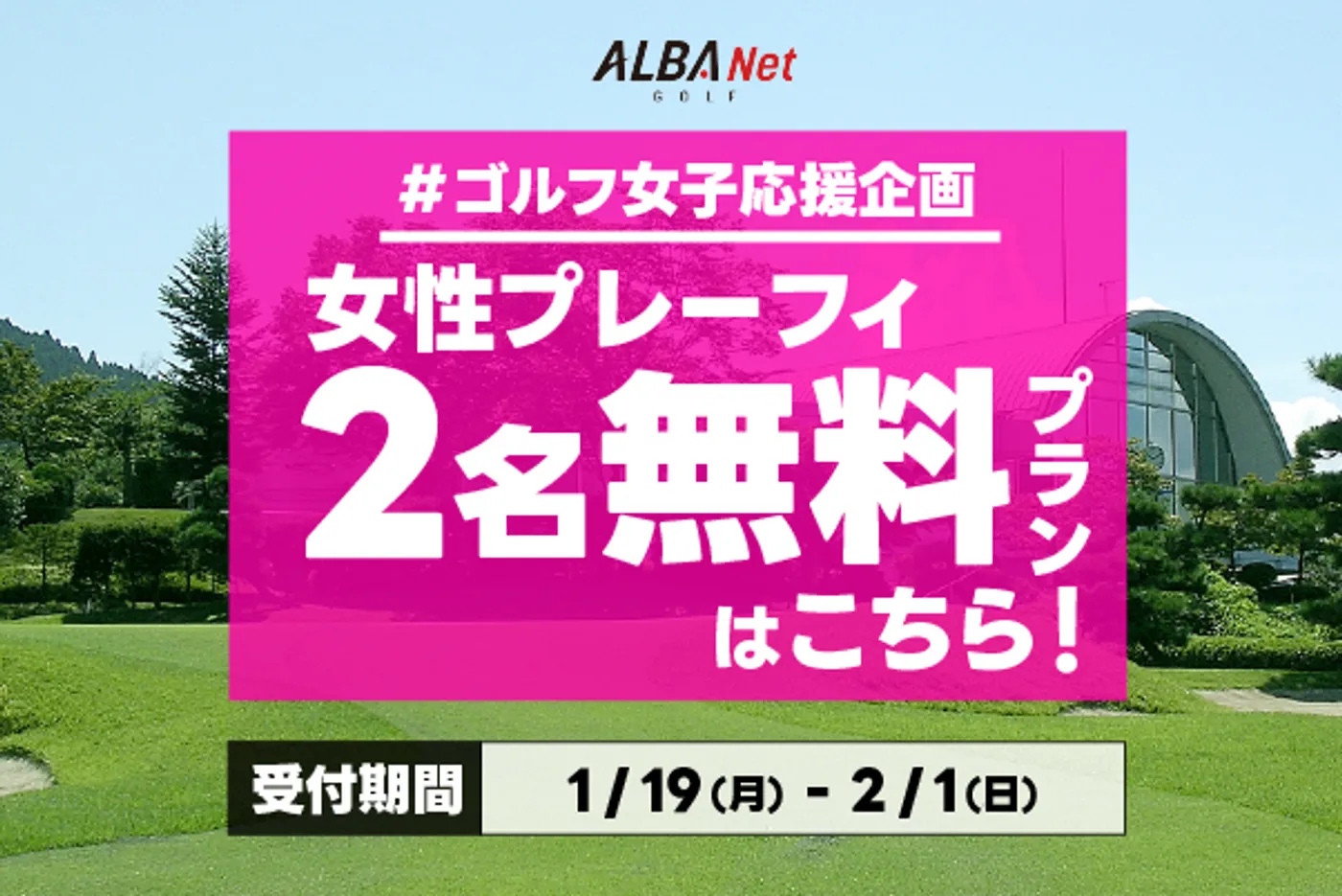 「#ゴルフ女子応援 2名プレーフィ無料」は女性だけでなく、男性も予約可能!