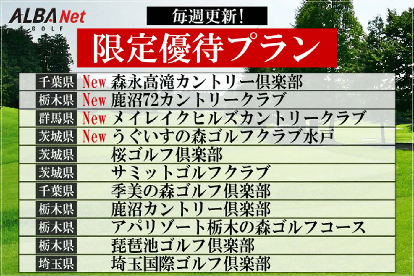 【毎週更新】関東エリアの人気コースを特別優待料金で予約ができる!