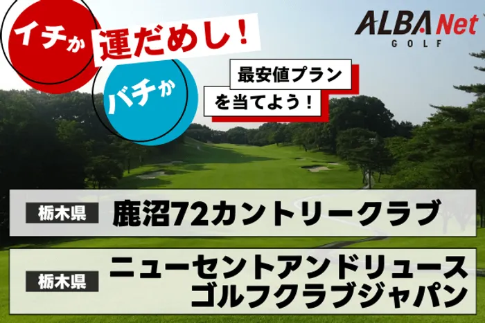 今週の対象コースは、「鹿沼72CC」「ニューセントアンドリュースGCJ」!イチかバチか運試し! 対象コースの最安値プランを当てよう!