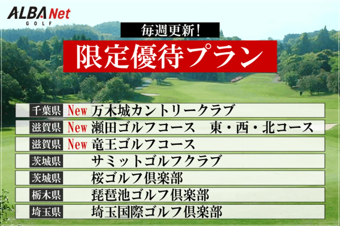 2026年1月8日 (木) 06時30分1今週の対象コースは、「京CC」「鳴沢GC」「うぐいすの森GC水戸」!イチかバチか運試し! 対象コースの最安値プランを当てよう!