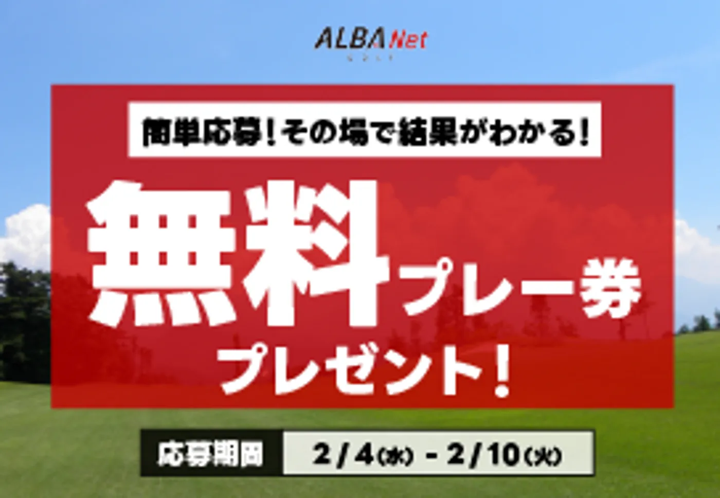全員のプレー代が無料になるチャンス!? その場で抽選結果がわかる!無料プレー券プレゼント!応募受付は、2/10(火)まで!