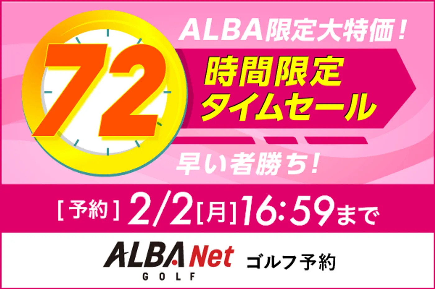 ALBA限定大特価!早い者勝ちの 72時間限定タイムセールを見逃すな!2/2(月)16:59まで!