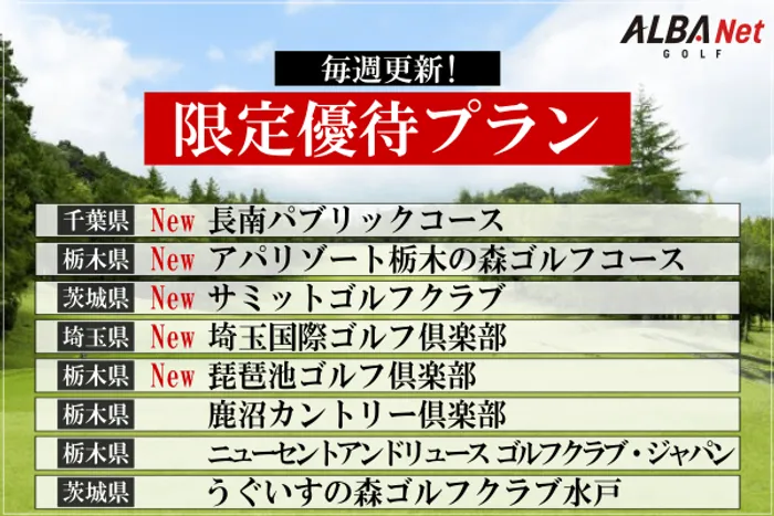 [写真] 【毎週更新】関東エリアの人気コースを特別優待料金で予約ができる!