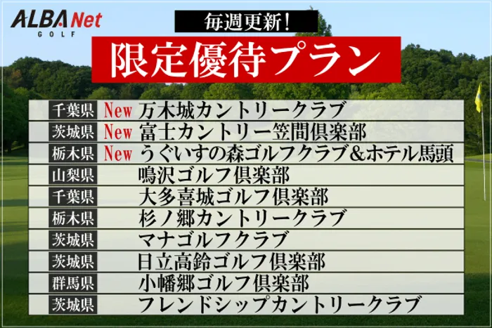 [写真] 【毎週更新】関東エリアの人気コースを特別優待料金で予約ができる!