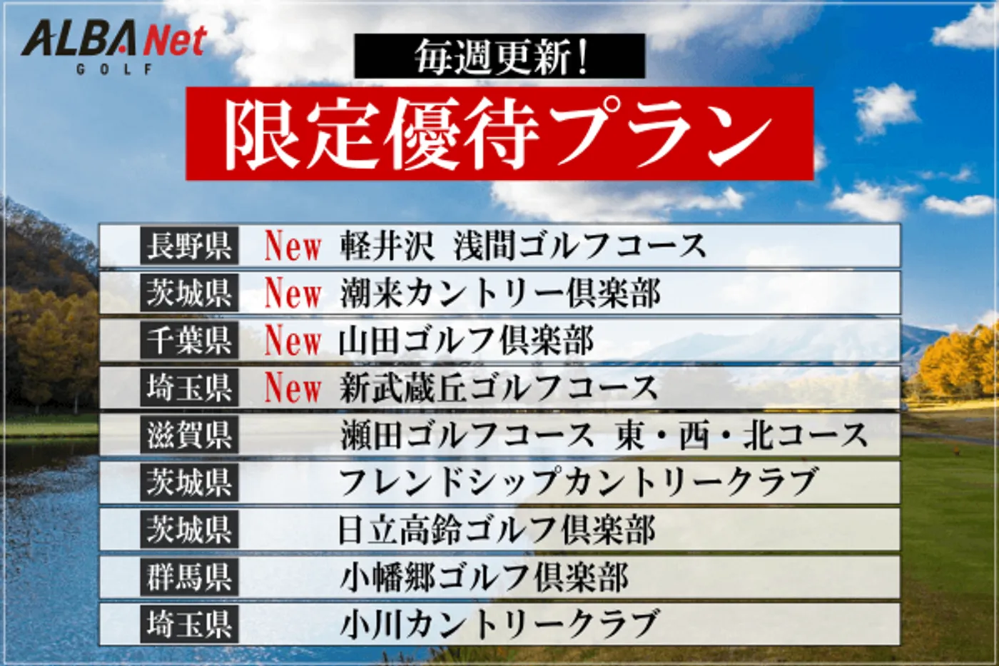 【毎週更新】関東&関西エリアの人気コースを特別優待料金で予約ができる!
