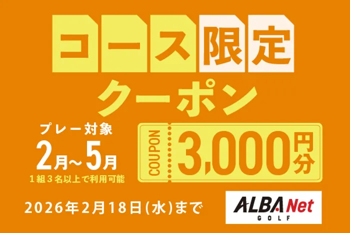 2026年2月9日 (月) 18時00分15月までのプレーに使える!対象コース限定3,500円分クーポン配布中!