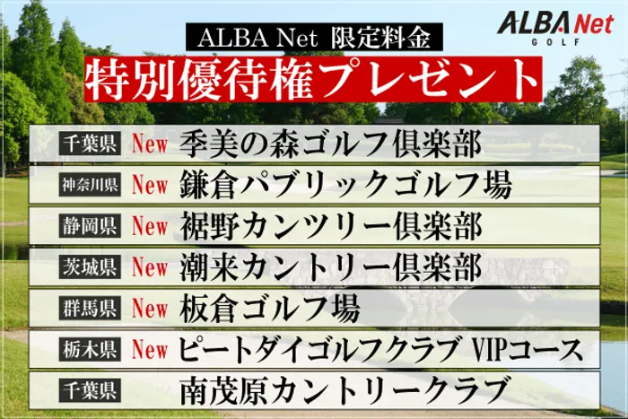 2025年12月17日 (水) 06時30分13月までのプレーに使える!対象コース限定2,000円分クーポン配布中!