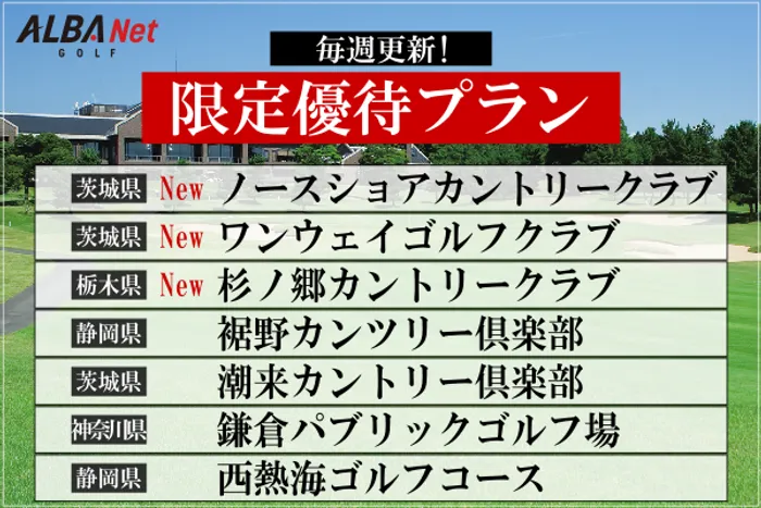 【毎週更新】関東エリアの人気コースを特別優待料金で予約ができる!