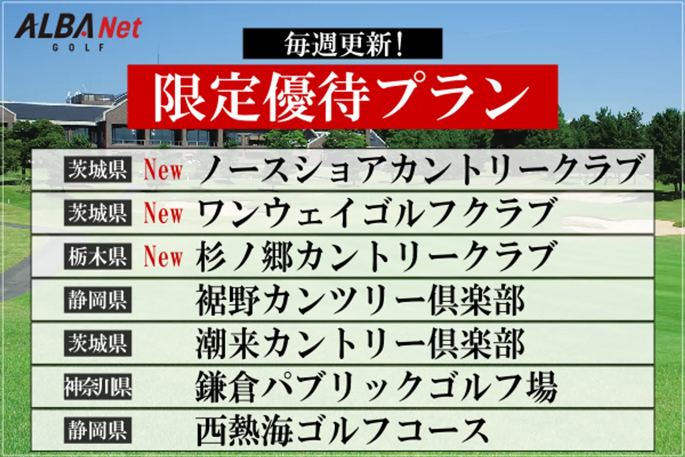 2026年1月19日 (月) 06時30分1今週の対象コースは、「京CC」「鳴沢GC」「うぐいすの森GC水戸」!イチかバチか運試し! 対象コースの最安値プランを当てよう!