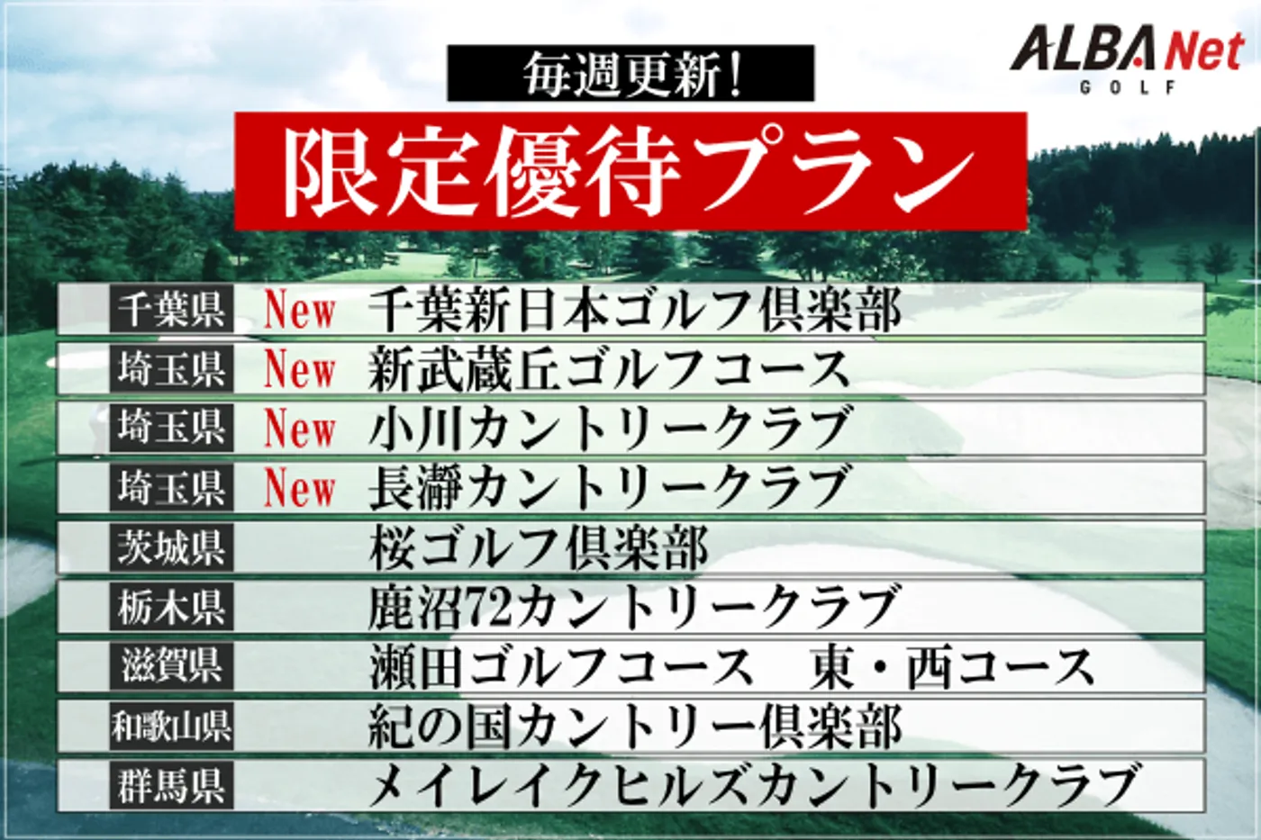 [写真] 【毎週更新】関東エリアの人気コースを特別優待料金で予約ができる!