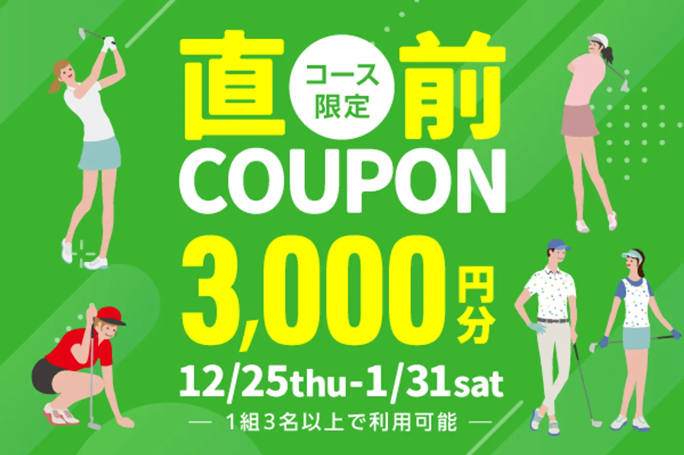 1月までのプレーに使える!対象コース限定3,000円&2,000円分クーポン配布中!