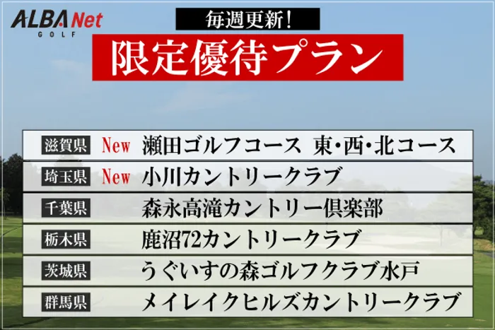 2026年3月12日 (木) 06時00分16月までのプレーで使える!関東&関西&中部&東北エリア対象34コース限定の1,500円分クーポン配布中!