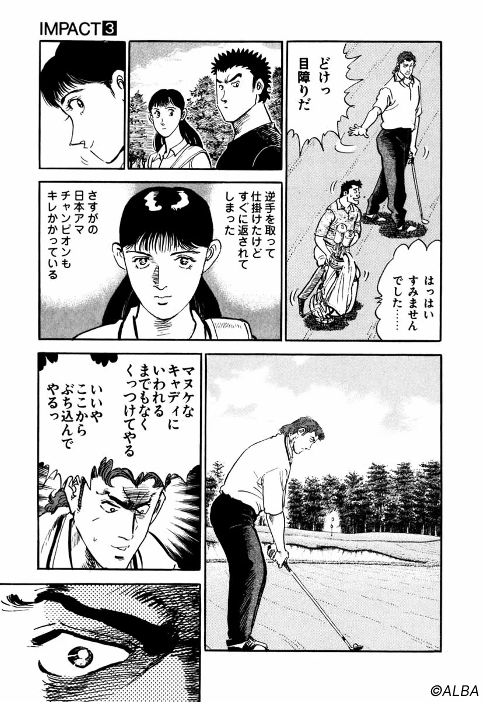 【第3巻あらすじ】ドライバーで軽く300ヤードを超えるショットを放つ鳴海一丸。浅草に流れ着いた元刀鍛冶師の男が、こともあろうに日本アマチャンピオンの御園聖志とマッチプレーのゴルフ勝負を始めた。ど素人の一丸に勝機はあるのか。|原作:坂田信弘、作画:竜崎遼児