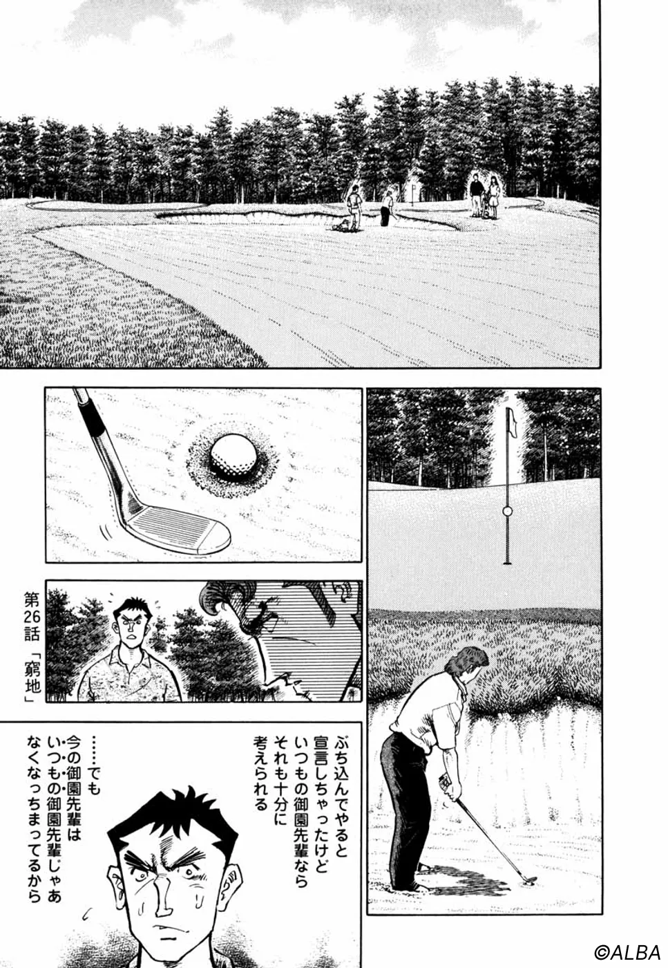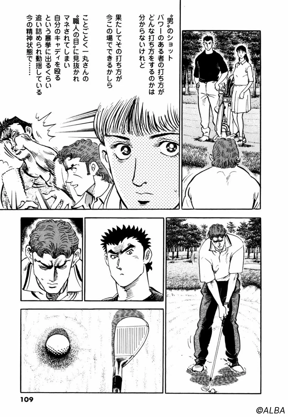 【前巻までのあらすじ】鳴海一丸は、流れの研師として東京・浅草にやって来た。ひょんなことからクラブを握った一丸は、ボールを真っ二つに割るショットを叩き出し、そのゴルフの才能を仙道桂に見込まれる。頑なにゴルフをけなし拒む一丸だが、それに腹を立てた日本アマチャンプの御園はゴルフ対決を申し込む。御園の優勢で始まった試合だが、開始早々一丸の鋭い視線に気づく。一丸は「職人の目」で御園のショットを盗み、自分のものにしていたのだ。