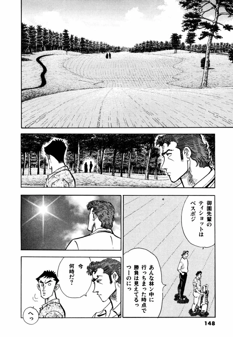 【前巻までのあらすじ】鳴海一丸は、流れの研師として東京・浅草にやって来た。ひょんなことからクラブを握った一丸は、ボールを真っ二つに割るショットを叩き出し、そのゴルフの才能を仙道桂に見込まれる。頑なにゴルフをけなし拒む一丸だが、それに腹を立てた日本アマチャンプの御園はゴルフ対決を申し込む。御園の優勢で始まった試合だが、開始早々一丸の鋭い視線に気づく。一丸は「職人の目」で御園のショットを盗み、自分のものにしていたのだ。