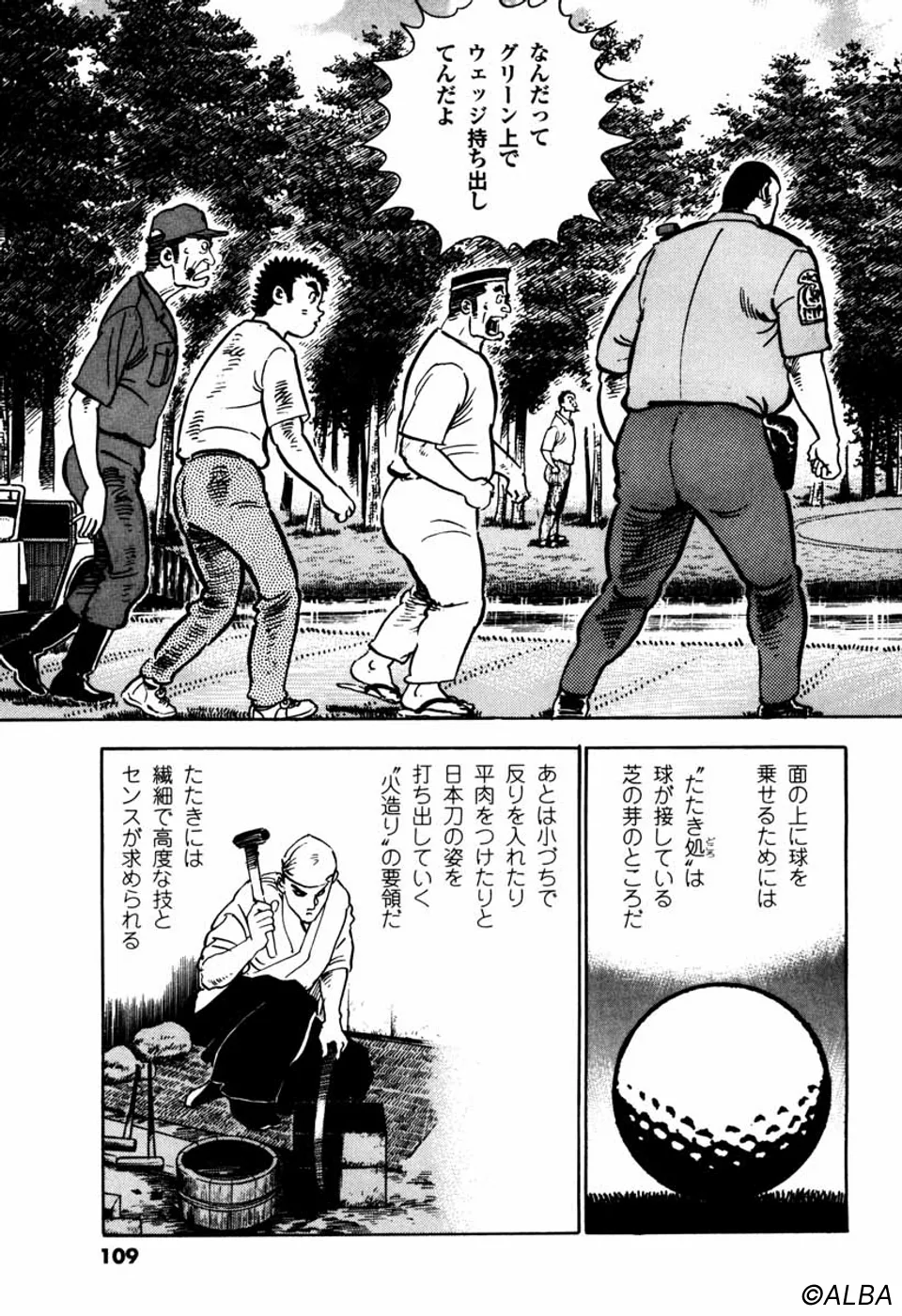 【前巻までのあらすじ】鳴海一丸は、流れの研師として東京・浅草にやって来た。ひょんなことからゴルフクラブを握った一丸は、ボールを二つに割る豪快なショットを叩き出し、才能を仙道桂に見込まれる。頑なにゴルフをけなし拒む一丸だが、それに腹を立てた日本アマチャンプの御園は桂を賭けたゴルフ対決を申し込む。御園の優勢で始まった試合だが、一丸は「職人の目」で相手のショットを盗み、ジリジリと追いつめる。御園は焦り、ペースを乱すが、やがて己を取り戻しスコアを引き離しにかかる…。