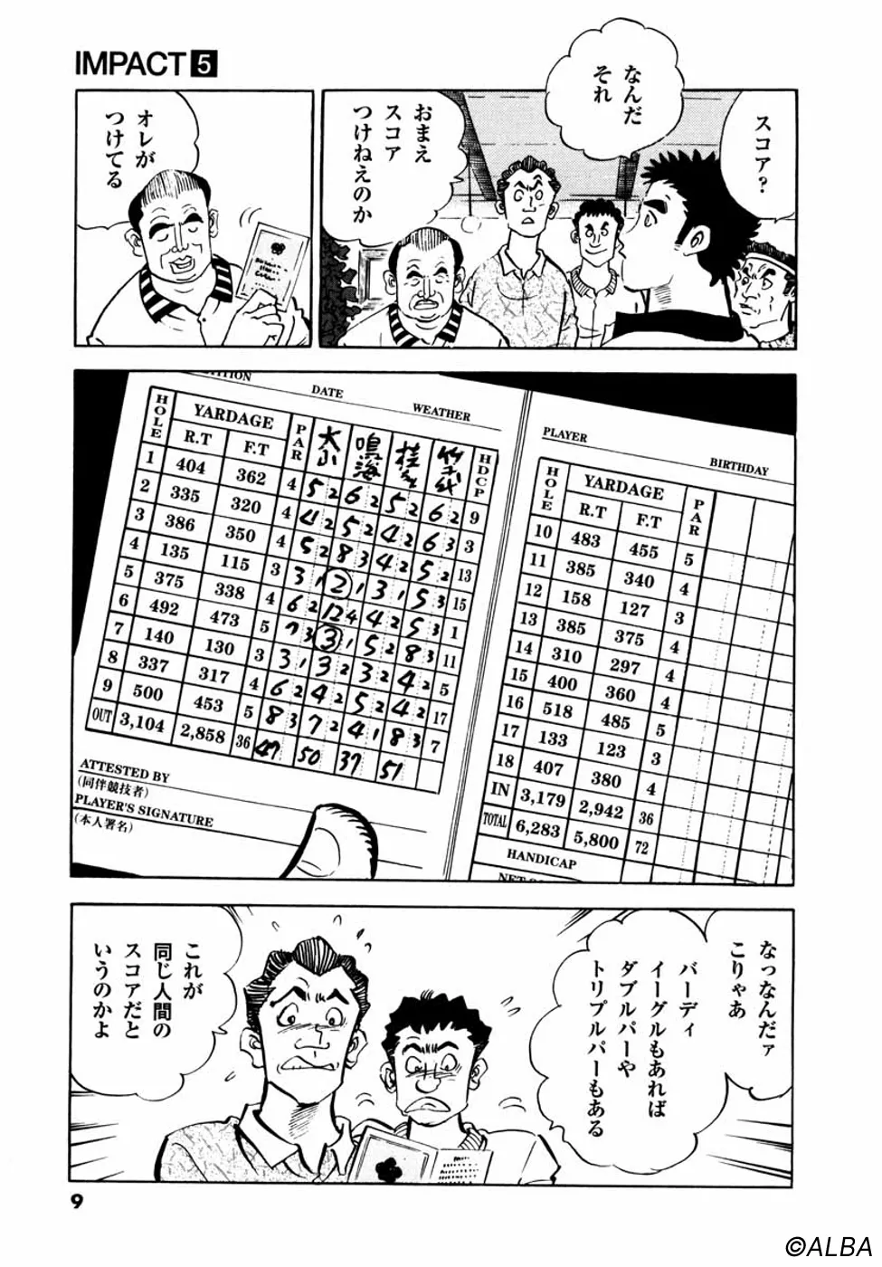 【第5巻あらすじ】生まれて初めてのラウンドで、全日本アマチャンピオン御園聖志(みぞの・きよし)との試合を引き分けた鳴海一丸(なるみ・いちまる)。その才能は多くの人間を魅了し、驚愕させた。そして一丸は、試合の途中からゴルフの魅力に気付き始める。ただ、一丸には刀鍛冶師への未練があった。それを見抜いたご穏居に「お前は刀を作るのではなく使う人間だ」と諭される。そんな中、一丸にトーナメント出場のチャンスが舞い込み、一路釧路へ……。