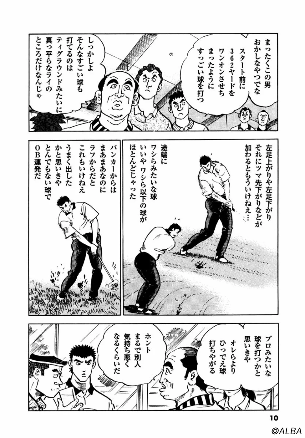 【前巻までのあらすじ】鳴海一丸は、流れの研師として東京・浅草にやって来た。ひょんなことからゴルフクラブを握った一丸は、豪快なショットを叩き出し、才能を仙道桂に見込まれる。頑なにゴルフをけなし拒む一丸だが、それに腹を立てた日本アマチャンプの御園は桂を賭けたゴルフ対決を申し込む。スコアは終始、御園の優勢が保たれたものの、一丸の「職人の目」でショットを盗まれ、一時は激しく動揺する。結局試合は最後の1ホールに絞られ、スコアに関係なく五分とみた御園が「勝負はプロへ持ち越し」と語り、引き分けとなった。