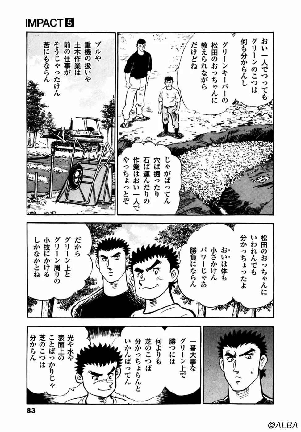 【第5巻あらすじ】生まれて初めてのラウンドで、全日本アマチャンピオン御園聖志(みぞの・きよし)との試合を引き分けた鳴海一丸(なるみ・いちまる)。その才能は多くの人間を魅了し、驚愕させた。そして一丸は、試合の途中からゴルフの魅力に気付き始める。ただ、一丸には刀鍛冶師への未練があった。それを見抜いたご穏居に「お前は刀を作るのではなく使う人間だ」と諭される。そんな中、一丸にトーナメント出場のチャンスが舞い込み、一路釧路へ……。