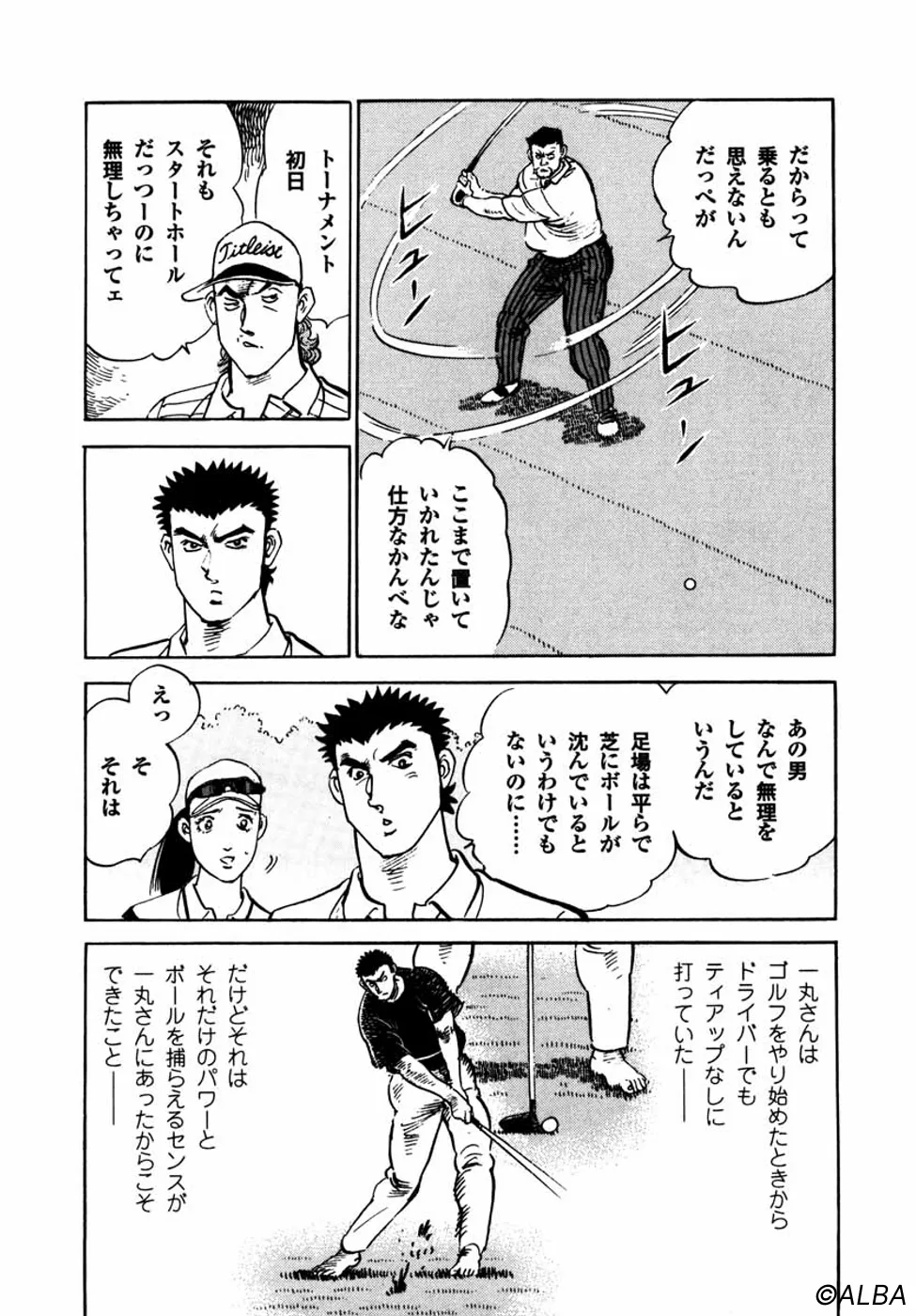 【前巻までのあらすじ】鳴海一丸は、流れの研師として東京・浅草にやって来た。ひょんなことからゴルフクラブを握った一丸は、豪快なショットを叩き出し、才能を仙道桂に見込まれる。頑なにゴルフをけなし拒む一丸だが、それに腹を立てた日本アマチャンプの御園は桂を賭けたゴルフ対決を申し込む。スコアは終始、御園の優勢が保たれたものの、一丸の「職人の目」でショットを盗まれ、一時は激しく動揺する。結局試合は最後の1ホールに絞られ、スコアに関係なく五分とみた御園が「勝負はプロへ持ち越し」と語り、引き分けとなった。