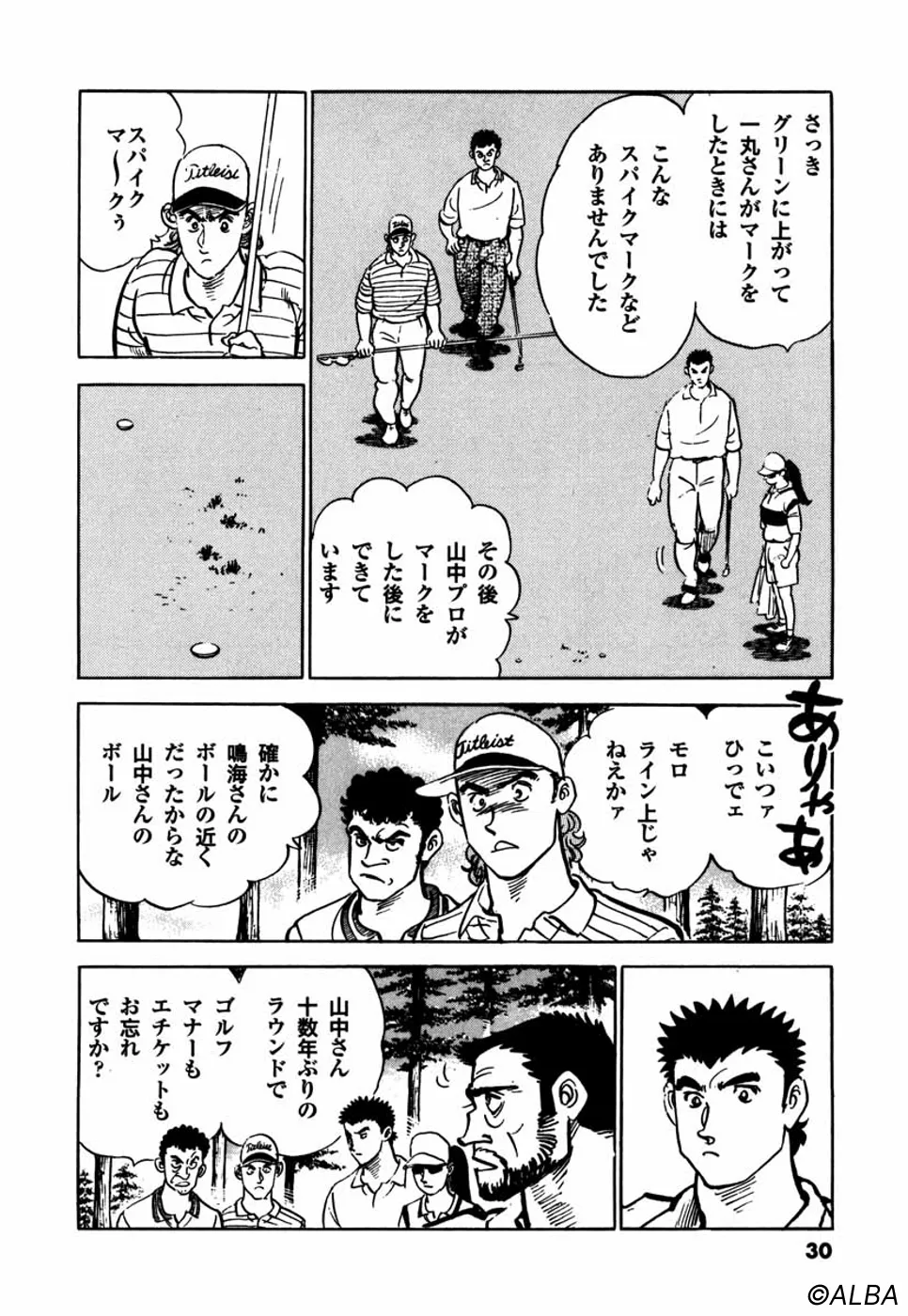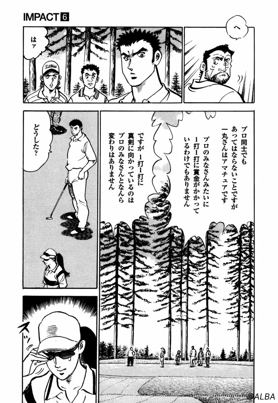【第6巻あらすじ】釧路オープン予選を通った鳴海一丸。むかえた第1日目、同組のプロ・山中一佐はなぜか一丸のプレーの邪魔をする。だが、そんな汚い手を使われるものの、気にもとめない一丸は、逆に山中のスイングを盗み始めた。二人だけの勝負が今、阿寒CCで展開される。