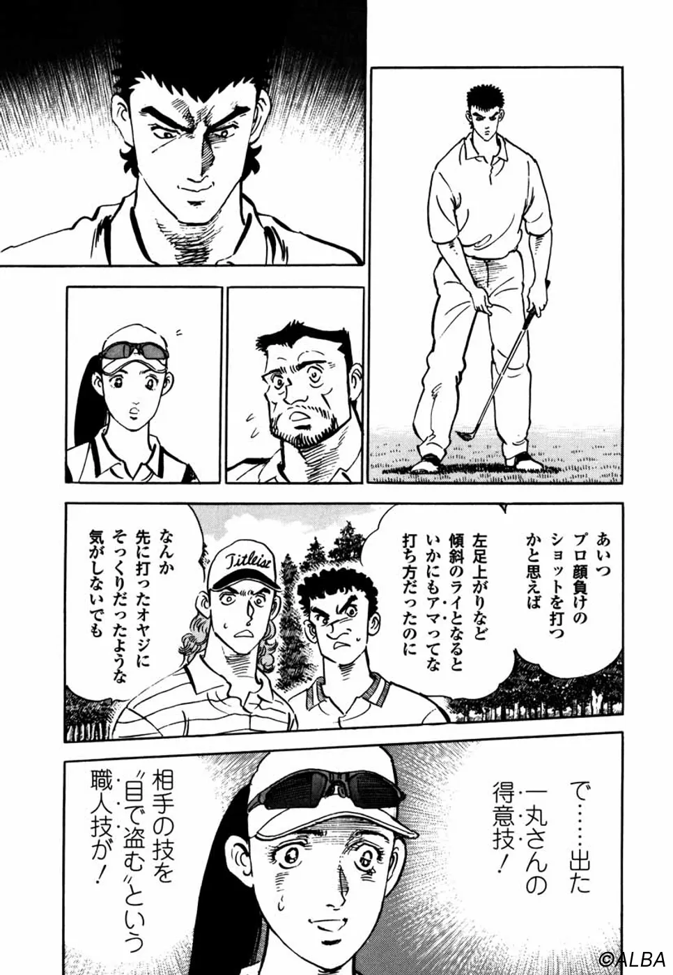 【第6巻あらすじ】釧路オープン予選を通った鳴海一丸。むかえた第1日目、同組のプロ・山中一佐はなぜか一丸のプレーの邪魔をする。だが、そんな汚い手を使われるものの、気にもとめない一丸は、逆に山中のスイングを盗み始めた。二人だけの勝負が今、阿寒CCで展開される。
