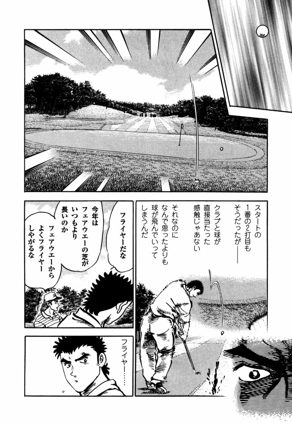 【第6巻あらすじ】釧路オープン予選を通った鳴海一丸。むかえた第1日目、同組のプロ・山中一佐はなぜか一丸のプレーの邪魔をする。だが、そんな汚い手を使われるものの、気にもとめない一丸は、逆に山中のスイングを盗み始めた。二人だけの勝負が今、阿寒CCで展開される。
