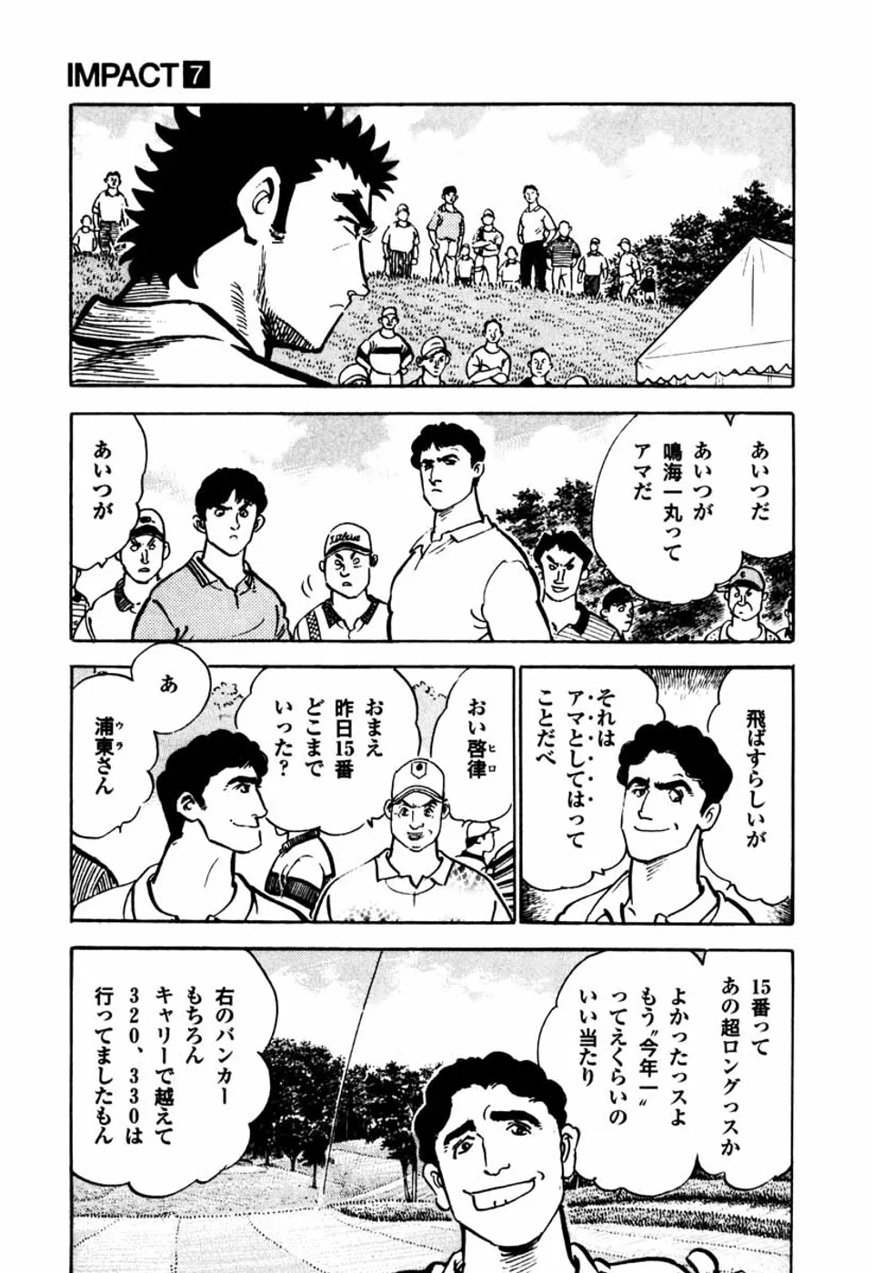 【第7巻あらすじ】元刀鍛冶師の鳴海一丸はゴルフを始めて4回目にして、釧路オープンに出場。並みいるプロを相手に対等にラウンドする。だが、山中一佐という、十数年前にゴルフ界から去ったプロゴルファーと同組になったことから、一丸のゴルフ観が変わろうとしていた。