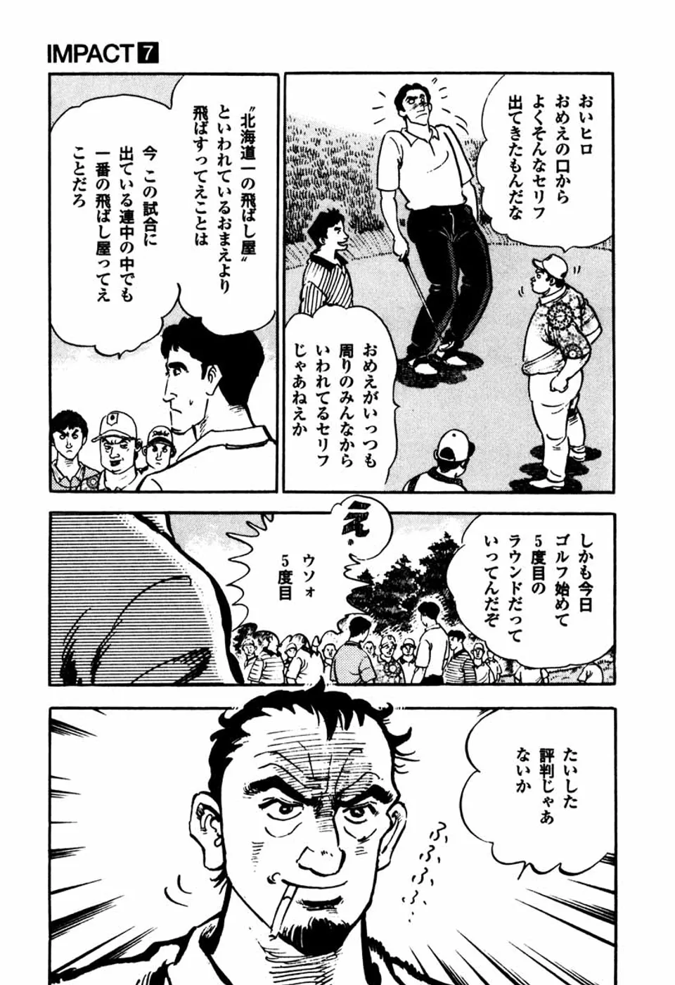 【第7巻あらすじ】元刀鍛冶師の鳴海一丸はゴルフを始めて4回目にして、釧路オープンに出場。並みいるプロを相手に対等にラウンドする。だが、山中一佐という、十数年前にゴルフ界から去ったプロゴルファーと同組になったことから、一丸のゴルフ観が変わろうとしていた。