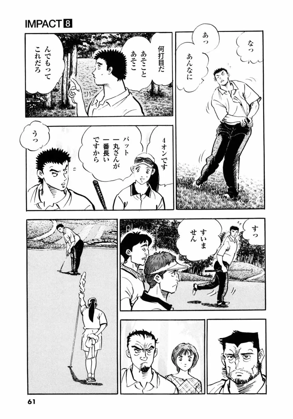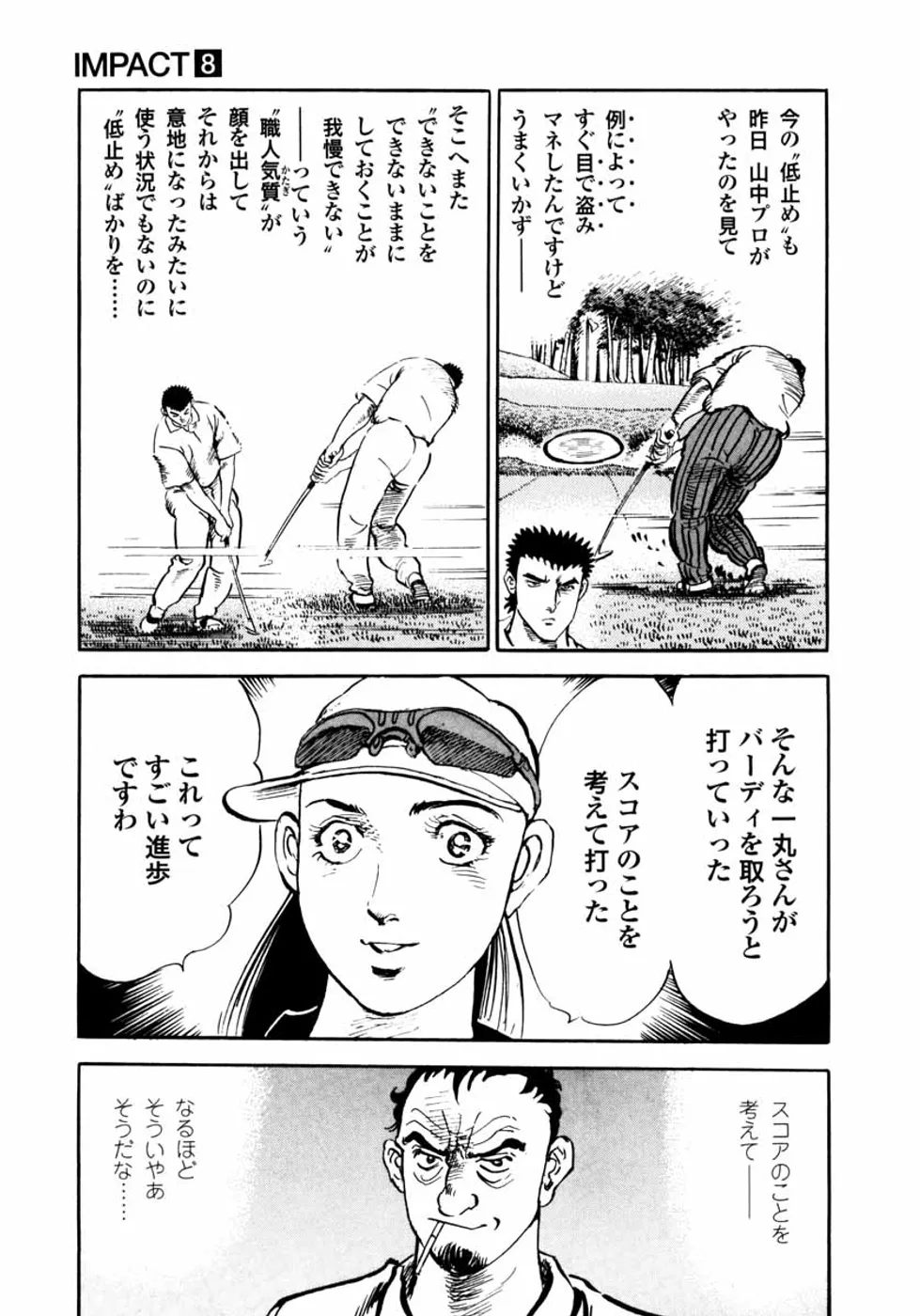【第8巻あらすじ】元刀鍛冶師・鳴海一丸にとって、ゴルフに出会ったことは運命なのか? 釧路オープン2日目、アマチュアとして出場した一丸の前に、往年のプロ・山中一佐が立ちはだかる。ゴルフとは、一打の重みとは…闘いのなか、山中の凄みが一丸に伝わる。