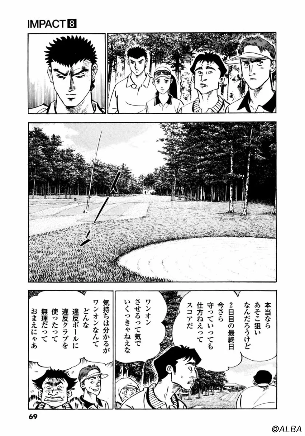 【前巻までのあらすじ】鳴海一丸は、流れの研師として東京・浅草にやって来た。ひょんなことからゴルフクラブを握った一丸は、豪快なショットを叩き出し、才能を仙道桂に見込まれ、生まれて初めてのラウンドで日本アマチャンピオンの御園を相手に引き分ける。ゴルフを始めて1ヶ月、4度目のラウンドでプロに混じっての「釧路オープン」は、共に回るプロ達のド肝を抜く才能を見せつける。一丸に対し、執拗に罠を仕掛けていた山中は、完全に本気モードにシフト。猛攻が始まった!