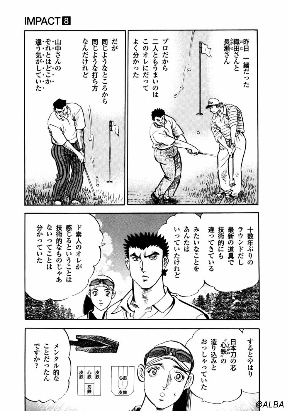 【第8巻あらすじ】元刀鍛冶師・鳴海一丸にとって、ゴルフに出会ったことは運命なのか? 釧路オープン2日目、アマチュアとして出場した一丸の前に、往年のプロ・山中一佐が立ちはだかる。ゴルフとは、一打の重みとは…闘いのなか、山中の凄みが一丸に伝わる。