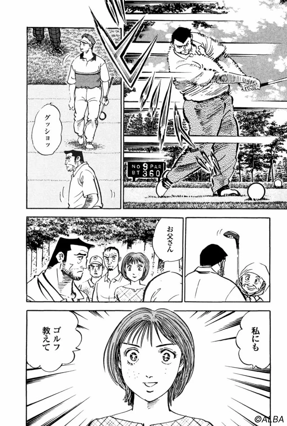 【第9巻あらすじ】往年の名プレーヤー・山中一佐と釧路オープンで戦った鳴海一丸。勝ち負けよりも、プロゴルファーとしての山中の生き方に、ゴルフに対する熱い思いに多くを学び、今再び浅草に戻ってくる。そして舞台は大茨城GCへ。今度はあの石塚一平が対戦相手だ。