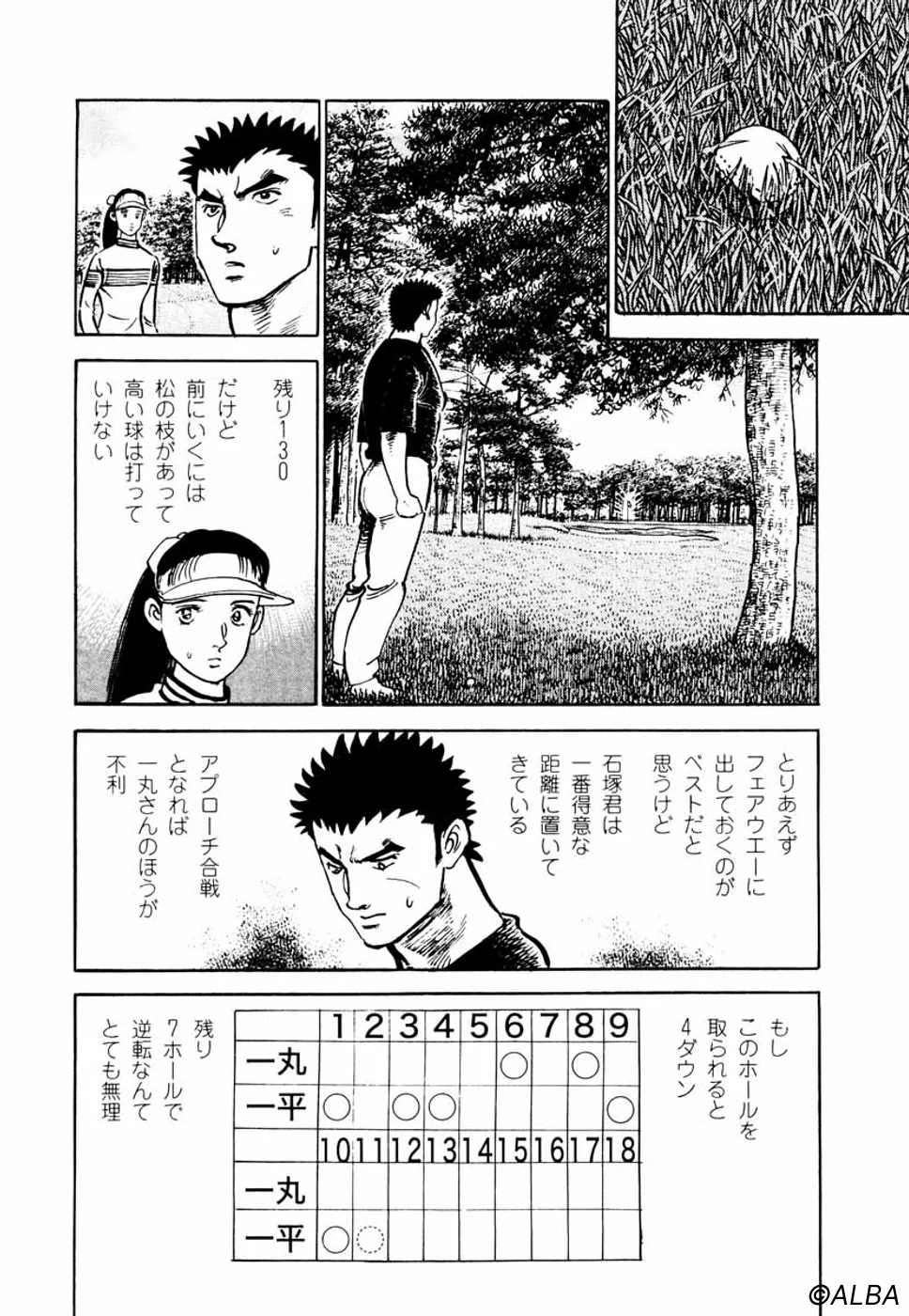【第10巻あらすじ】釧路オープンから帰ってきたばかりの鳴海一丸が、今度は後に終生のライバルとなる石塚一平とゴルフマッチを開始した。場所は大茨城GC。パワーVS.技の緊迫する対決はゴルフファン必見。スーパーショットがフェアウェイに、グリーンにさく裂する!