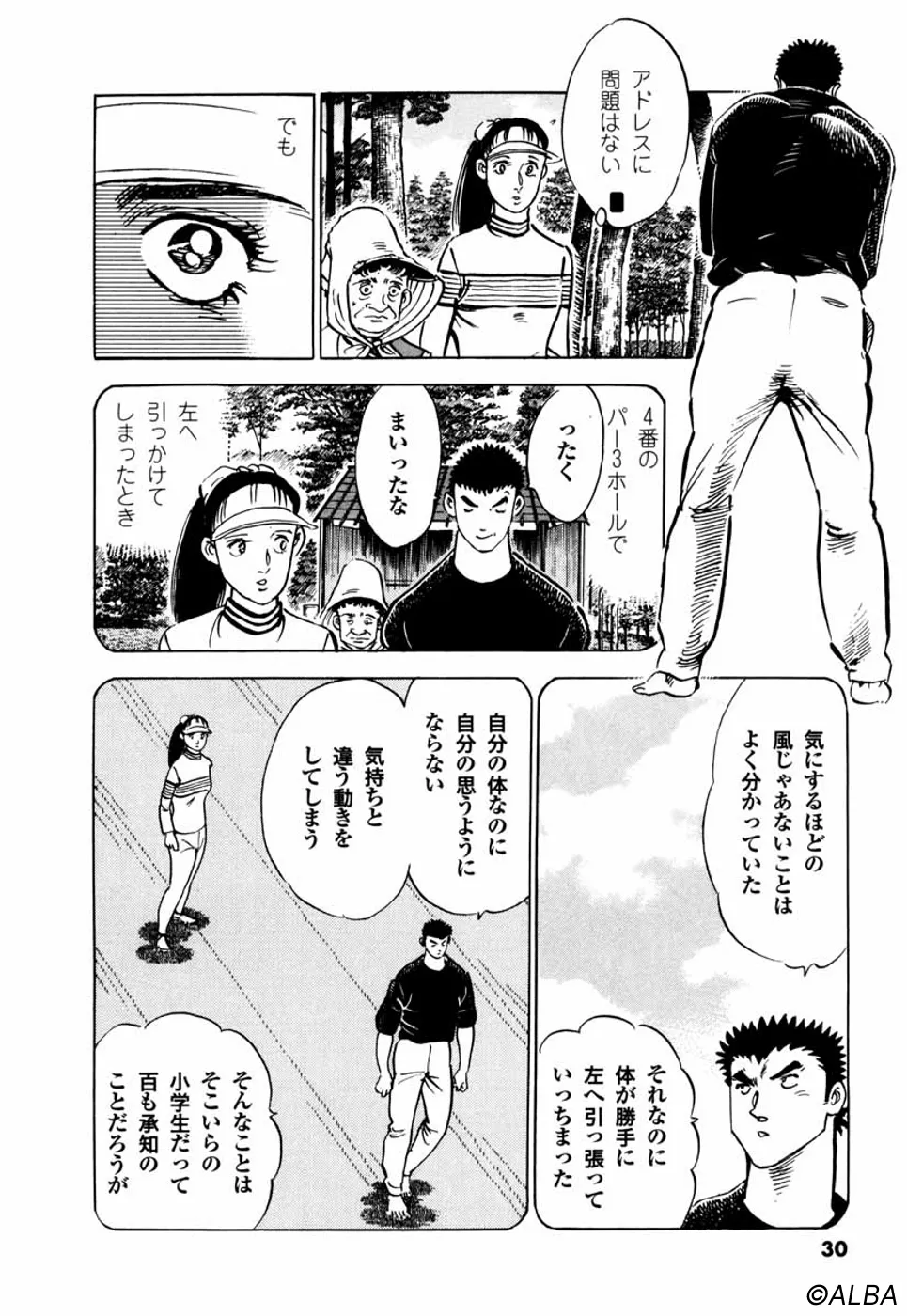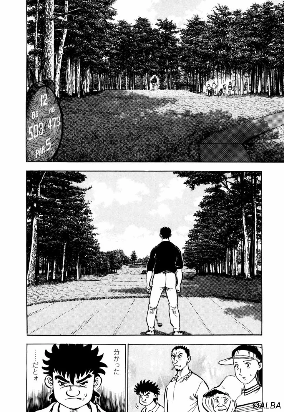 【前巻までのあらすじ】東京・浅草に来た流れの研師・一丸は、初めて握ったゴルフクラブで豪快なショットを放ち、桂に見込まれる。ゴルフを始めた一丸は、日本アマチャンピオンの御園や山中プロらと対戦し、「目でショットを盗む」という職人技と天性の才能を見せつけ、周囲の度肝を抜く。そして大信田プロの特訓を受けた一平とのマッチプレー対決。コースを知り尽くす一平に対し、一丸は桂とキャディの一切の口出しを禁じられ、明らかに形成は不利。しかも一平から「預金全額を掛ける」申し出まで受けた一丸だが…。