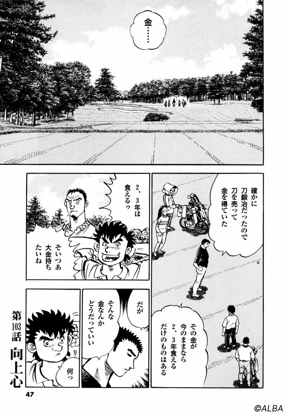 【前巻までのあらすじ】東京・浅草に来た流れの研師・一丸は、初めて握ったゴルフクラブで豪快なショットを放ち、桂に見込まれる。ゴルフを始めた一丸は、日本アマチャンピオンの御園や山中プロらと対戦し、「目でショットを盗む」という職人技と天性の才能を見せつけ、周囲の度肝を抜く。そして大信田プロの特訓を受けた一平とのマッチプレー対決。コースを知り尽くす一平に対し、一丸は桂とキャディの一切の口出しを禁じられ、明らかに形成は不利。しかも一平から「預金全額を掛ける」申し出まで受けた一丸だが…。