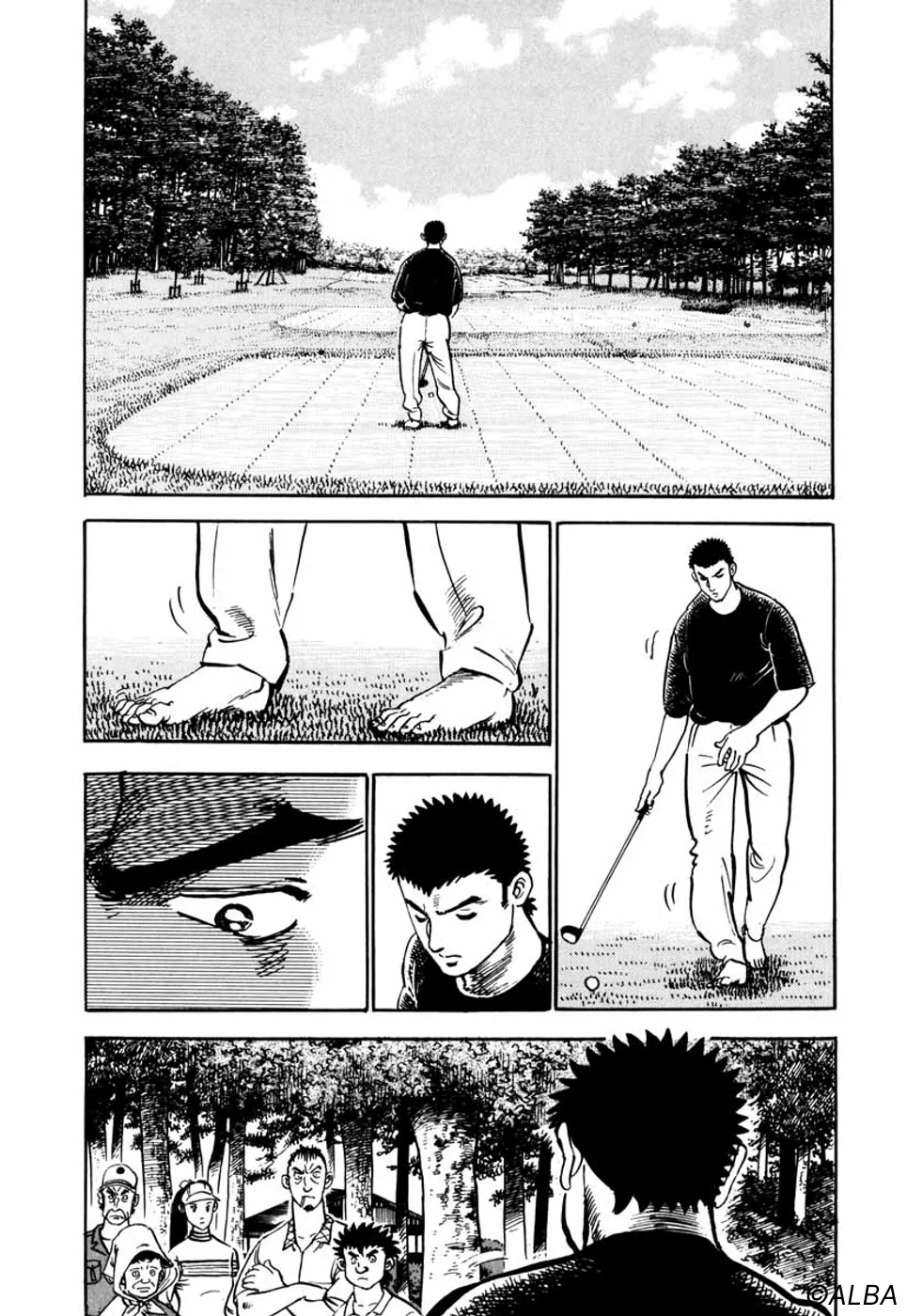 【前巻までのあらすじ】東京・浅草に来た流れの研師・一丸は、初めて握ったゴルフクラブで豪快なショットを放ち、桂に見込まれる。ゴルフを始めた一丸は、日本アマチャンピオンの御園や山中プロらと対戦し、「目でショットを盗む」という職人技と天性の才能を見せつけ、周囲の度肝を抜く。そして大信田プロの特訓を受けた一平とのマッチプレー対決。コースを知り尽くす一平に対し、一丸は桂とキャディの一切の口出しを禁じられ、明らかに形成は不利。しかも一平から「預金全額を掛ける」申し出まで受けた一丸だが…。