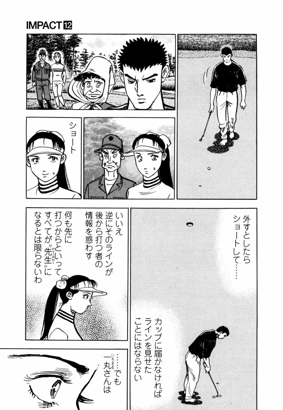 【第12巻あらすじ】残すホールは3つ。鳴海一丸対石塚一平のゴルフマッチもクライマックス。1アップと断然優位に立つ一平に鬼門ホールが待ち受ける。一丸の逆転勝利はあるのか? 勝負にゴルフに、真から目覚めた男たちの熱いドラマは必見。龍虎対決がついに決着する!!
